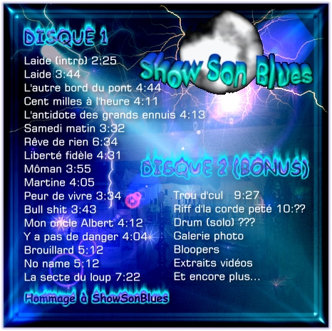 C'est en juillet que les membres de Show Son Blues entre en studio pour réaliser leur rêve; soit l'enregistrement d'un premier album. L'album fut réalisé au studio Montebello. Après plusieurs mois de travail acharné et de nombreux compromis, les membres du groupe sont fiers d'envoyer l'ensemble de leur oeuvre musicale (17 chansons) sous presse.